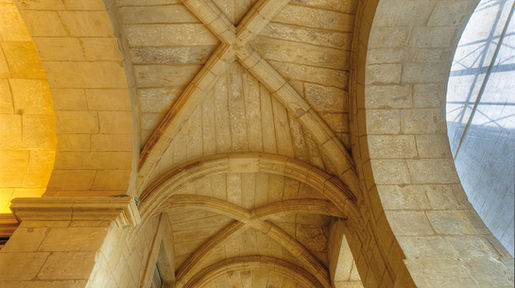 The first floor houses a multifunction room and a board room, each with carefully worked doors, replicas of those found during restoration, with the exact same patterns and shutters and painted in a pale green/blue that was typical of the period. This floor has a number of columns that were discovered during the cleaning of the stonework. These columns were hidden behind other bricks, swallowed up by later wall additions.