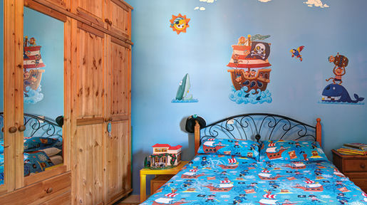The final room of interest was the child’s bedroom and encompasses everything that a young boy’s bedroom should be. The room has a pirate theme which is reflected in everything from the choice of bedding to the murals on the wall which I was told were sourced online. With practical pine furniture from Granny Smith that offers plenty of storage this is a room that will grow with the child and at present is a fun and colourful representation of the vivid imagination of childhood without an overabundance of computer toys and action figures.