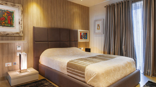 The hi-tech gadgetry is one of the apartment’s many features, including state of the art lighting, switches, dimmers and speakers. ‘A new range of switches and dimmers by AVE Touch is completely hidden behind a glass front plate, all sensitive to a simple touch,’ says James. ‘And thanks to a soft LED, the light shines from the back of the front plate and is also immediately visible in the dark. Three stripes on the front plate surface signals the point where you have to touch, while a light “tick” confirms whether it’s on or off.’