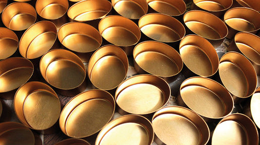 The basic shapes of all our Halcyon Days enamel boxes are formed by being pressed from fine sheets of copper. The copper is then washed in various solutions including soapy water, acid and clean water to cleanse and etch the surface of the copper. This procedure is crucial to prepare the surface to hold the first coat of enamel.