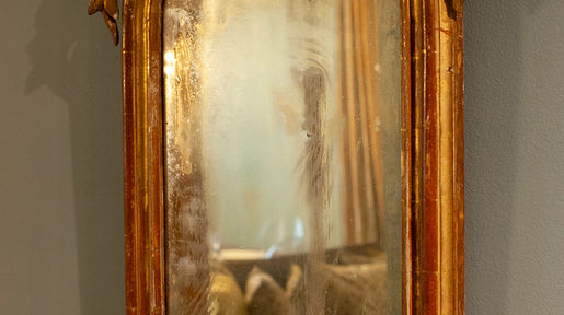 The hall way offers a thoughtful perspective with antique mirrors adorning the fore of the photo and modern art at the far end adding colour and contrast. The compact antique wardrobe once again repeats the natural wood theme whilst providing additional storage.